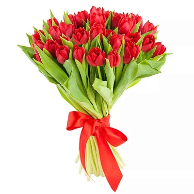Ароматный, нежный и насыщенный букет! Ранункуллус Клуни - 7шт., Тюльпан Ред Принцесс - 20 шт., Фрезия - 10 шт., Берграсс - 1 шт., Салал - 1 шт.